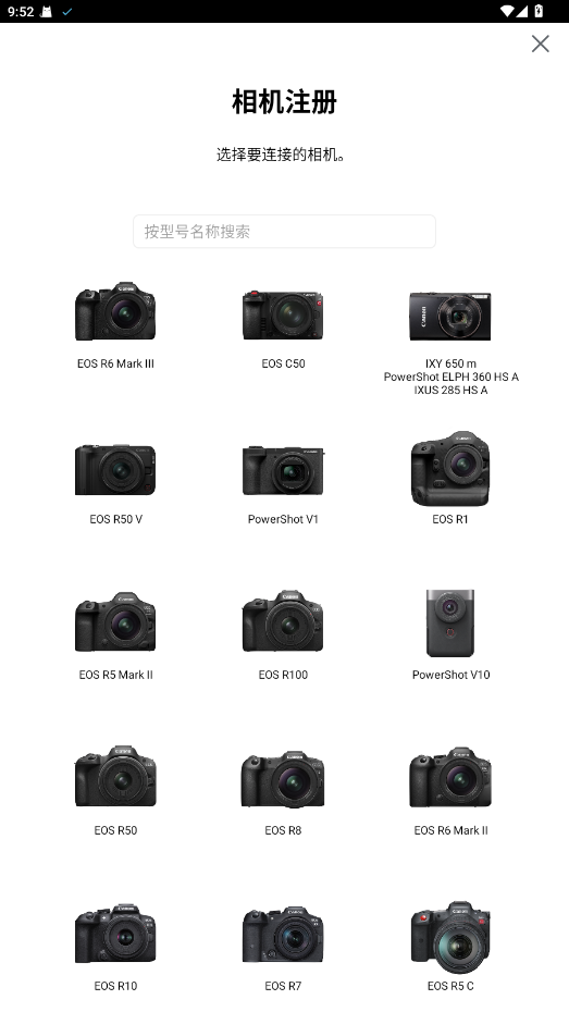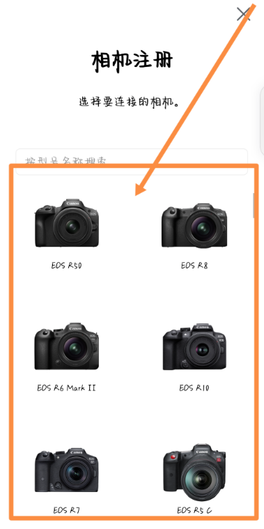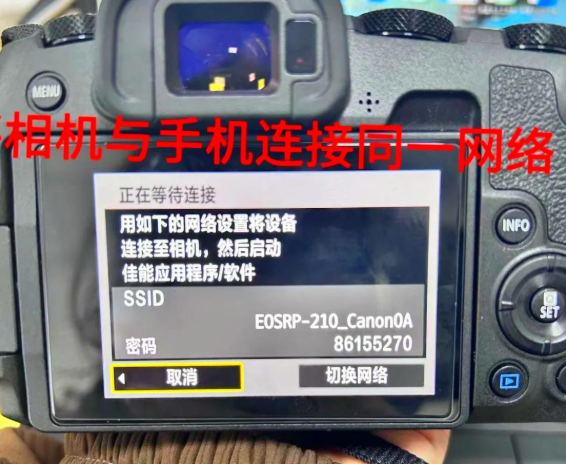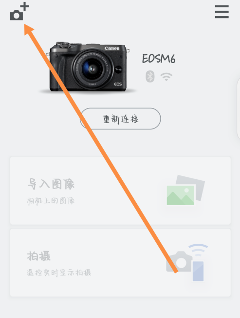 4、在手机上连接相机的Wifi。 打开手机上的CameraConnect应用。app主界面如下。Camera Connect会自动识别相机配对。相机显示屏上会跳转到确认是否连接该手机的页面,点击确定。出现下图,再点击确定即可。
