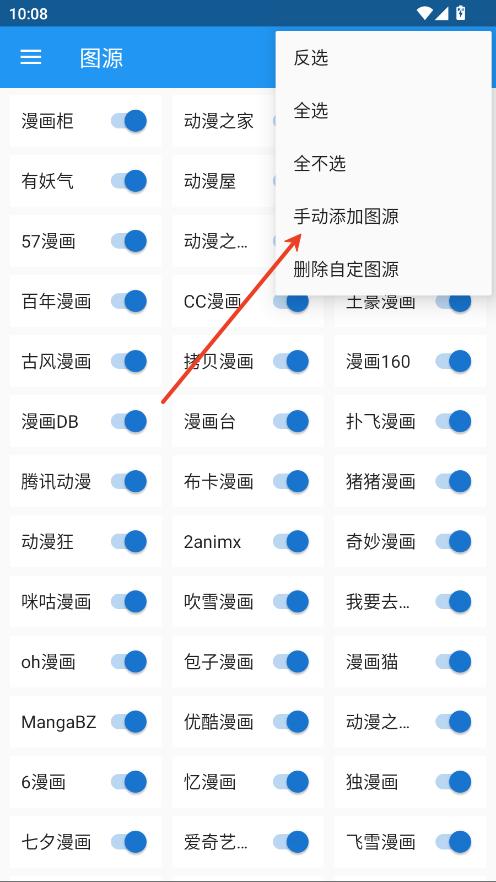 4.点击手动添加图源。