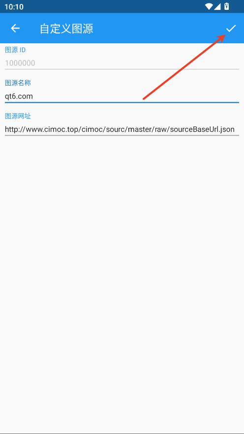 5.图源名称可自定义,在地址内输入本文提供的源。点击√即可。
