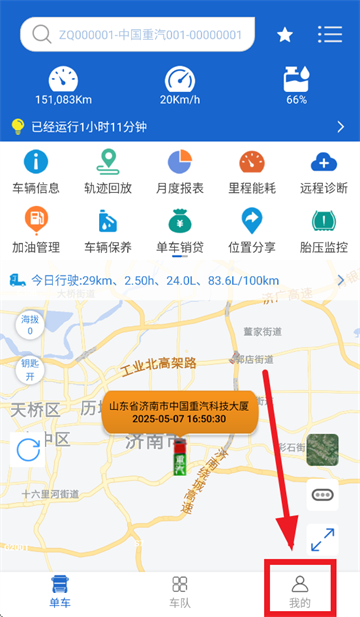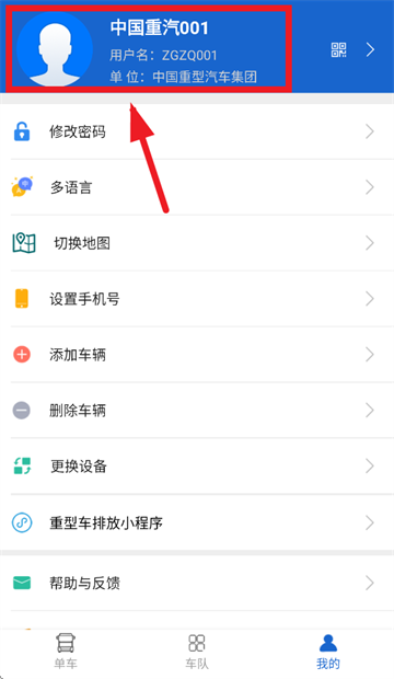 1.下载安装并打开重汽智能通app,进入单车首页后,点击我的