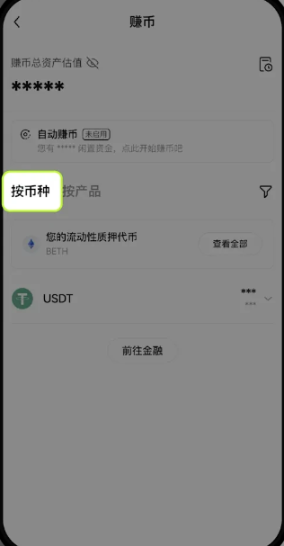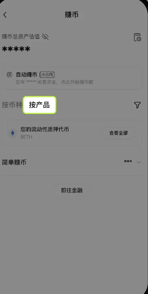 【按币种】或【按产品 】 区选择活期简单赚币