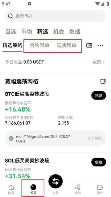 1、首页选择【发现】,顶部选择【跟单】,可在【跟单广场】看到带单交易员的收益率。选择【综合排序】,可按照不同的方式进行排序,选择你要跟单的交易员,点击【跟单】。