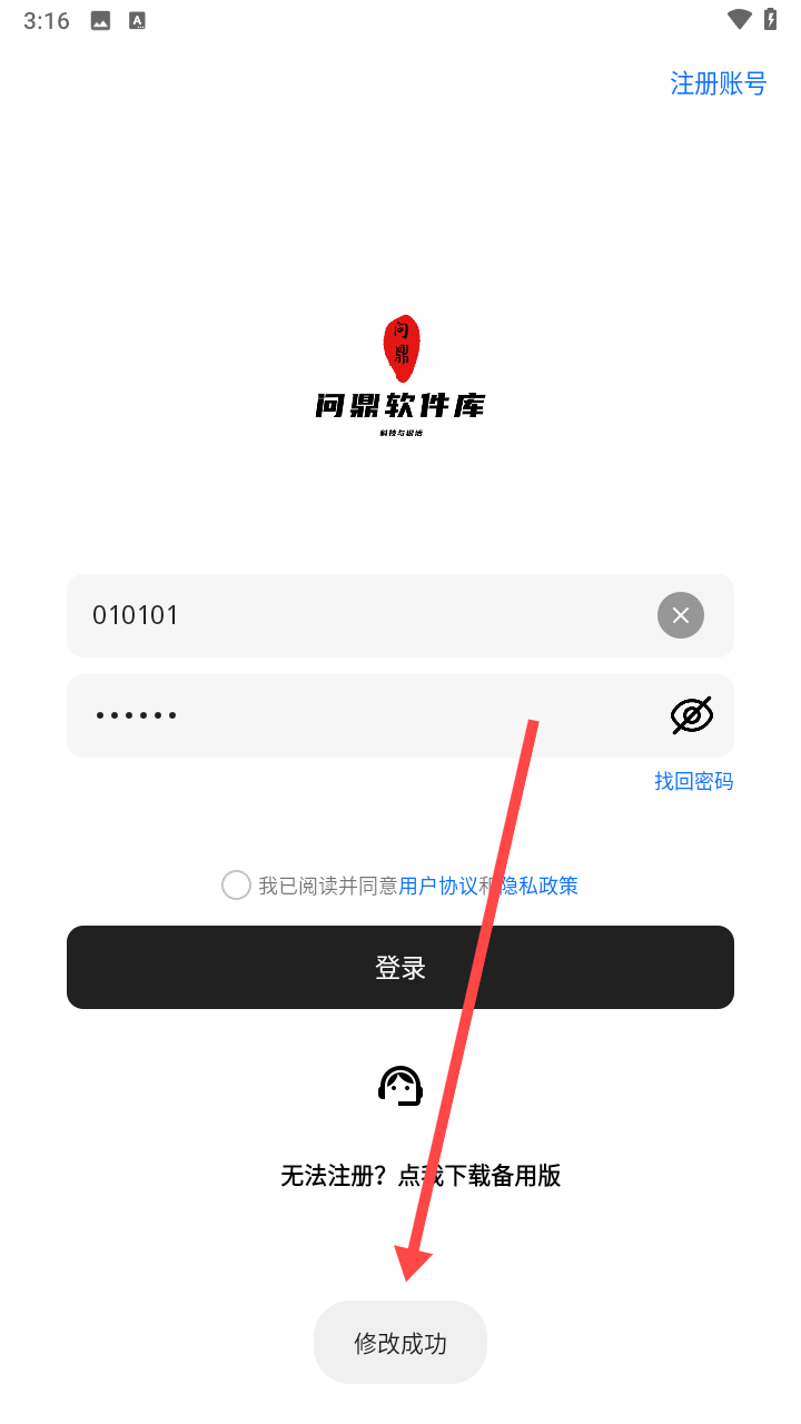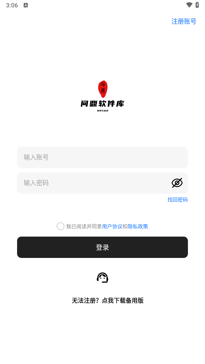 2、第一次使用,需要任意输入账号,密码注册登录之后使用。