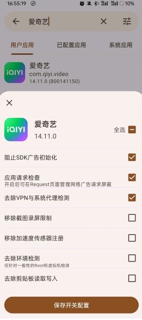 4.在模块作用域中选择您希望去除广告的应用。