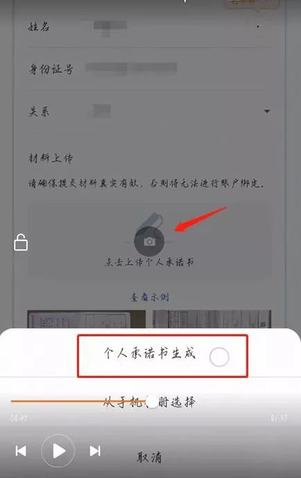 5.上传户口本照片后,可点击自动生成“个人承诺书”