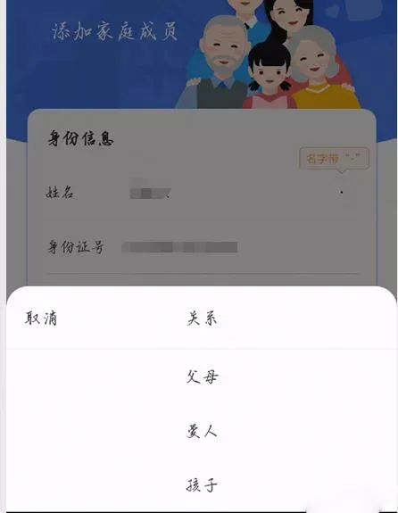 4.输入需要添加的人员信息,选择关系“父母、爱人、孩子、其他”