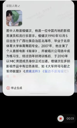 在唤醒的同时,还会同时识别当前屏幕上的文字,右下角有个文字识别的符号,人物侧脸都能准确识别出来