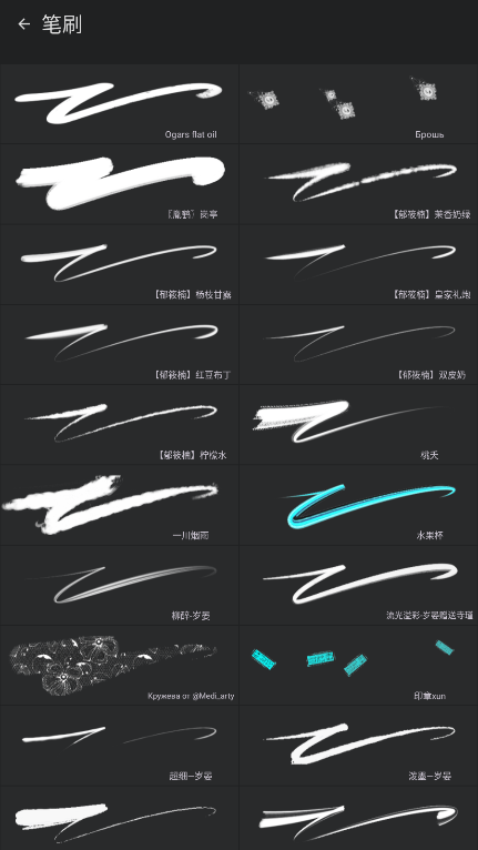 1、使用笔刷:点击画笔图标→即可选择笔刷使用;