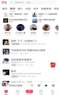 1、打开APP后,首页即可进入听歌模式,上下滑动随机切换歌曲,根据顶部分类找寻喜爱的音乐吧。