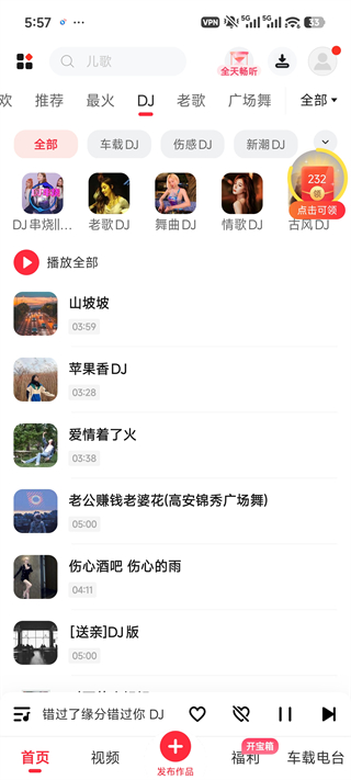 4、在“车载电台”中,可以随时收听音乐电台,感受电台模式的轻松惬意。