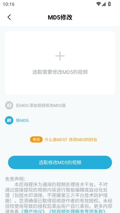 4.点击MD5修改,选取需要修改MD5的视频即可快速修改。