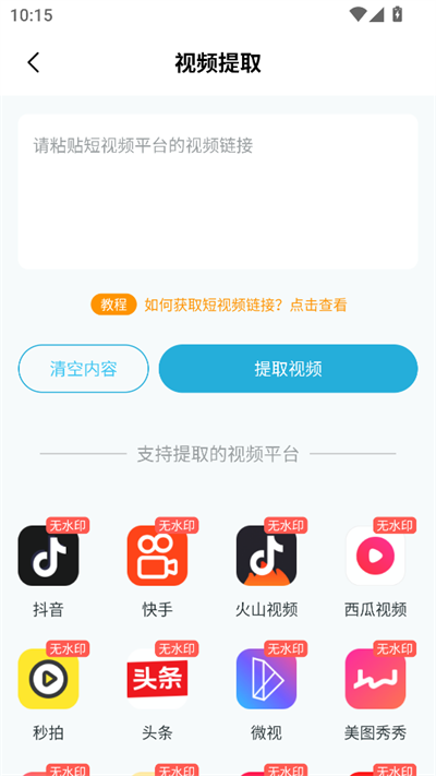 3.选择视频提取功能,粘贴短视频平台的视频链接,点击提取视频即可。