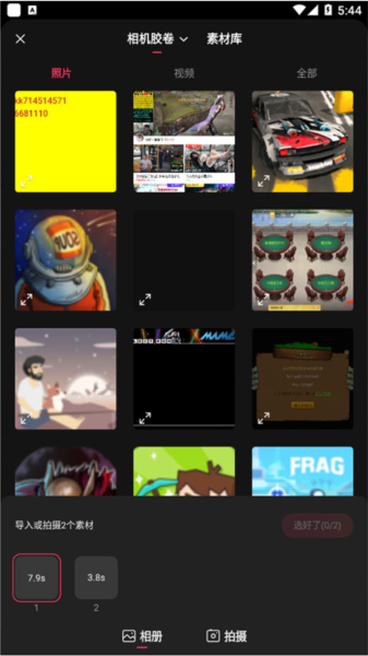 2、然后会打开手机的视频界面,选择要剪辑的视频后点击【完成】;