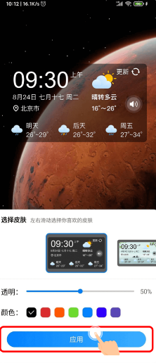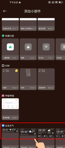 3.找到当准天气,选择你喜欢的小组件插入至空白处