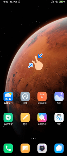 1.在桌面上“长按”或“双指合拢”