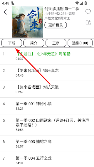 1、在“听推”界面点击小说进入详情界面,然后点击“下载”按钮;