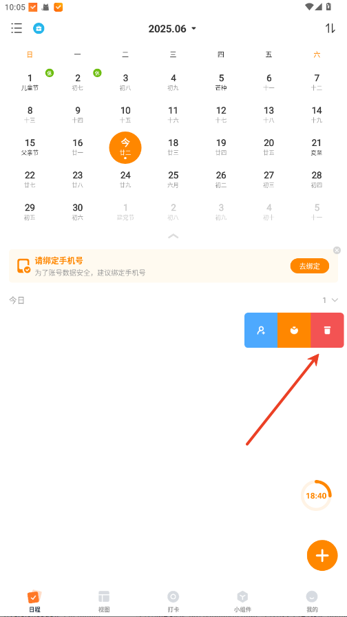 在日程内找到你要删除的标签,向左滑动。