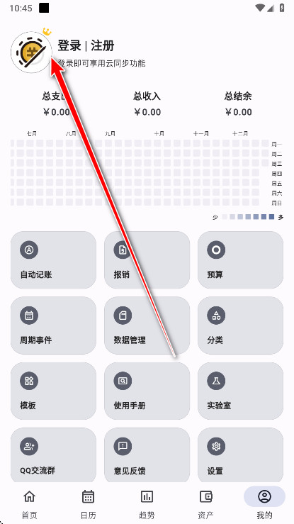 2.进入个人中心,找到自动记账