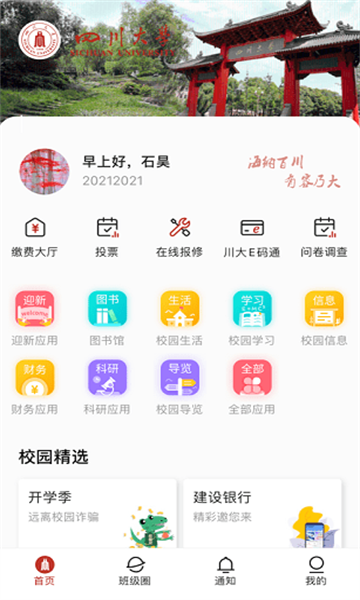 1.下载并登录云上川大APP,进入首页。