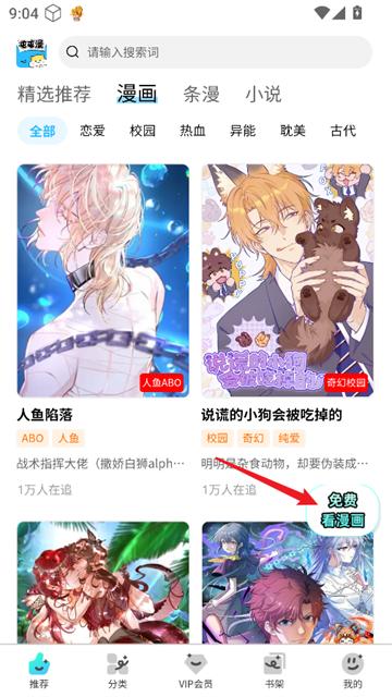 3、或在主页点击右侧“免费看漫画”。
