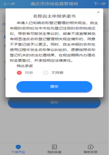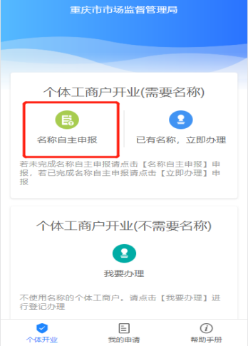 以需要名称的个体工商户为例。点击【名称自主申报】