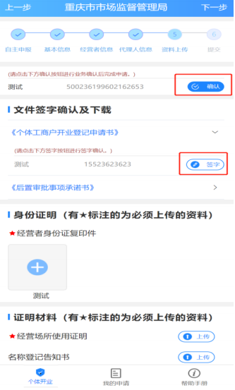 完成实名认证和文件签字,上传身份证明和证明材料
