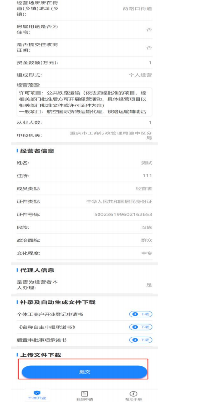 完成实名认证和文件签字,上传身份证明和证明材料后,点击下一步进入提交界面,核对信息后,点击【提交】等待审批即可