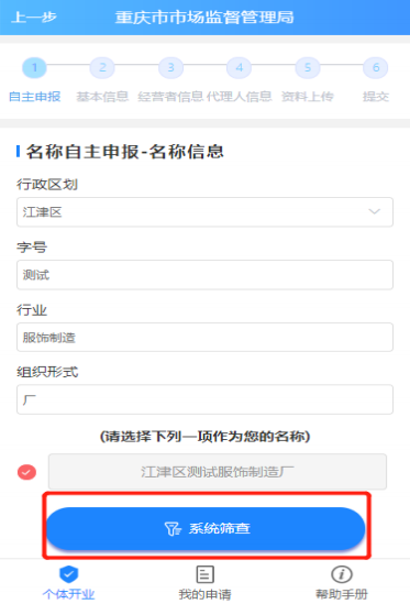 录入名称信息,选择企业名称,点击【系统筛查】