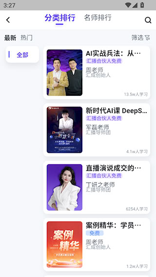 3、在【新课上架】专栏,点击【全部课程】,有不同的学习资源
