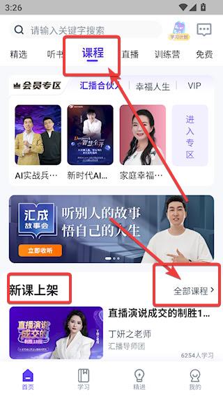 2、点击顶部【课程】,进入课程界面,可获得更多系统课程