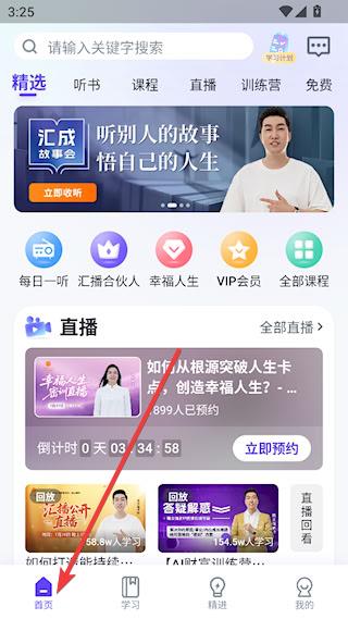 1、下载安装后,进入汇播学堂APP首页,有丰富的课程资源