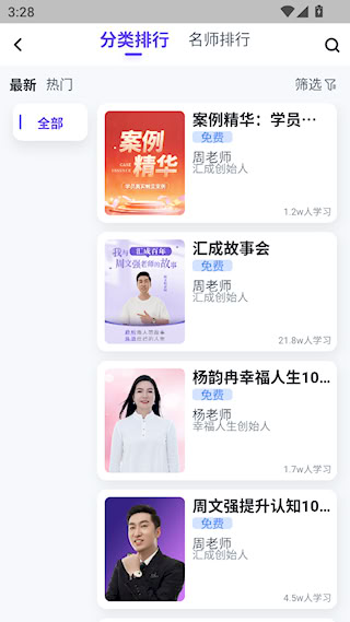 汇播学堂是专注财商教育与个人成长的专属平台,坚守 “财商改变思维、知识改变命运” 的核心理念,以系统化课程与前沿 AI 技术为支撑,已陪伴超百万家族踏上财商启蒙之路。平台涵盖财商、幸福人生、事业有成三大核心模块,分别助力用户重塑财富思维、解锁幸福密码、突破事业瓶颈。更有海量免费听书、电子书等资源,课程由业内专家精心打磨,兼具专业性与实用性,支持多场景灵活学习,坚持理论结合实践,让用户零门槛获取优质知识,全方位提升财富认知与综合能力。