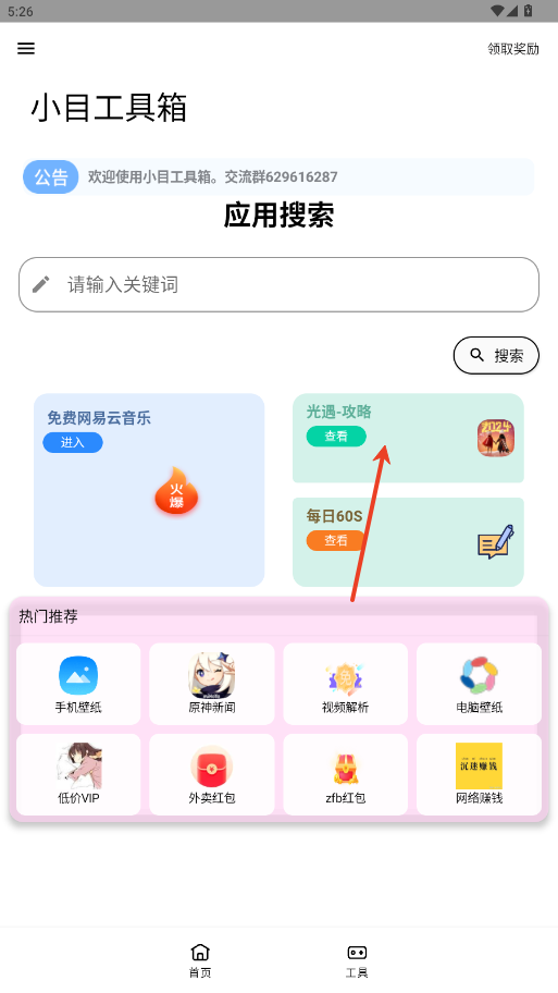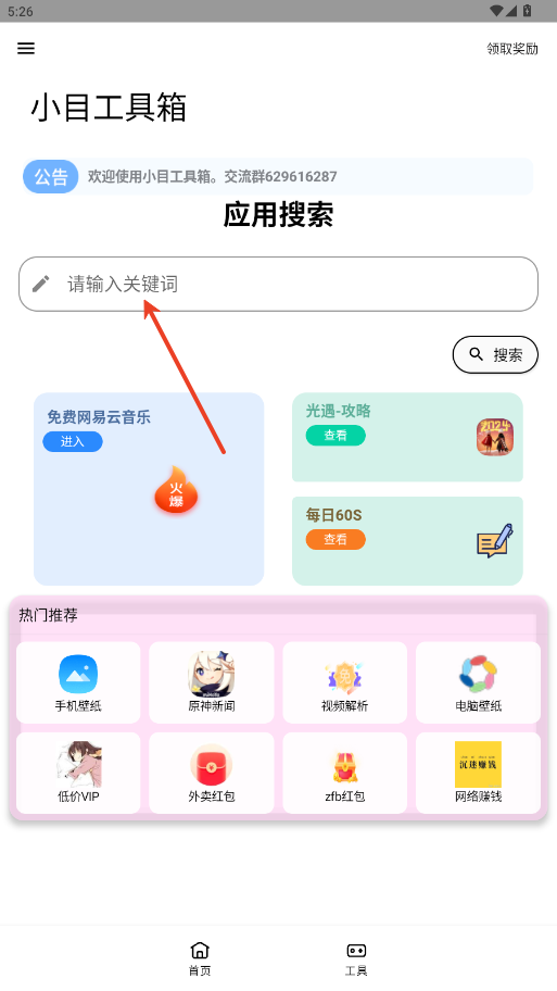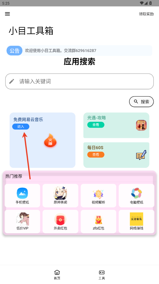 5.在音乐工具区打开网易云入口,可搜索、播放全网歌曲,无需单独安装客户端。