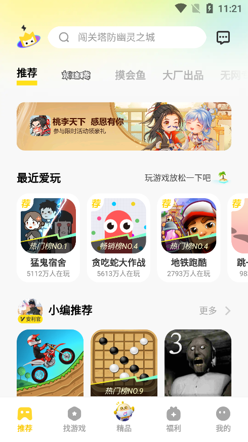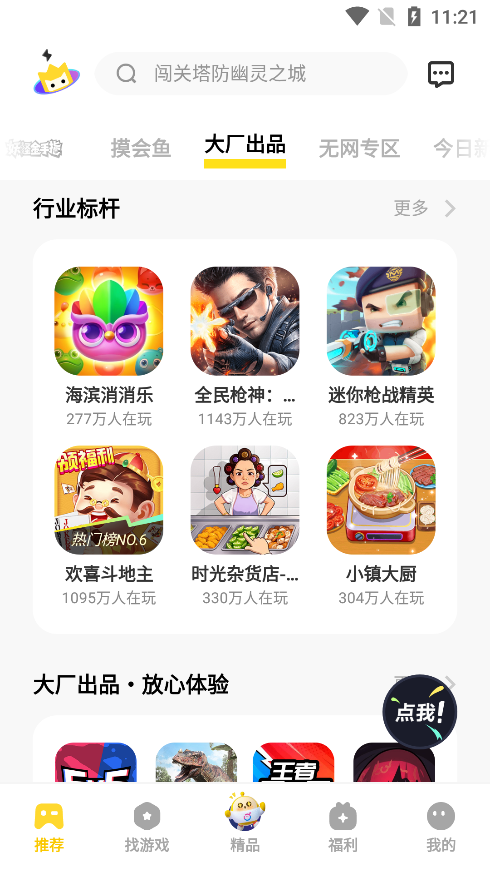 1.打开软件在推荐页面可以看到各种游戏