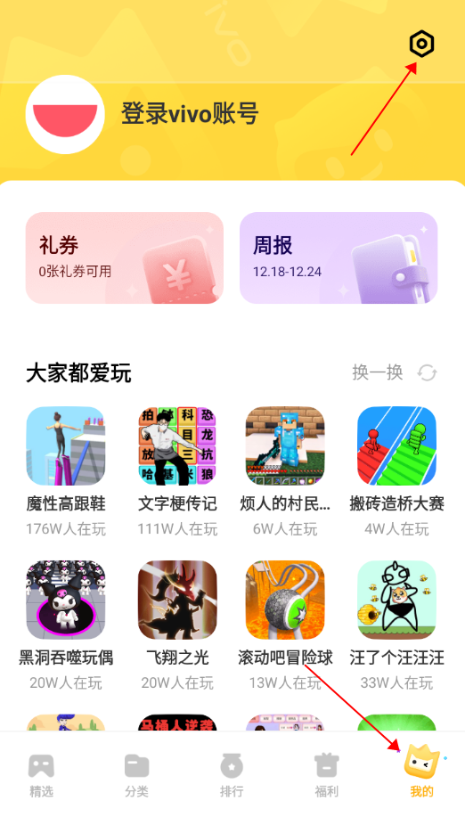 1.进入app点击我的,然后点击右上角齿轮设置