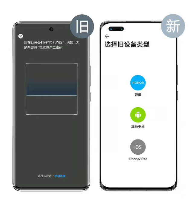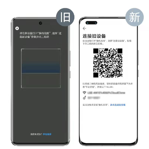 3.用旧设备扫描新设备上二维码,建立连接。