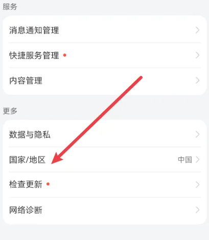 2、然后点击国家/地区。