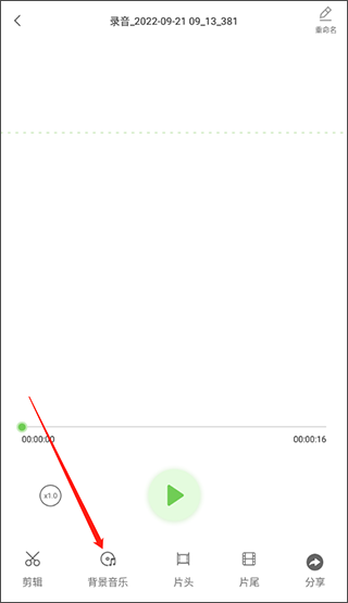 4、点击完了之后回到音频编辑界面如果背景音乐上面有红色的数字就说明我们成功的添加了背景音乐。