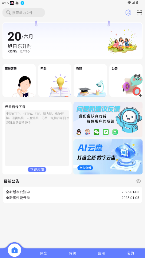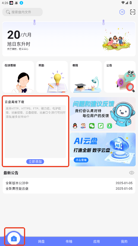 支持云盘的离线下载功能,用户可以选择文件进行离线保存,之后在没有网络连接时也能随时查看和使用下载内容。