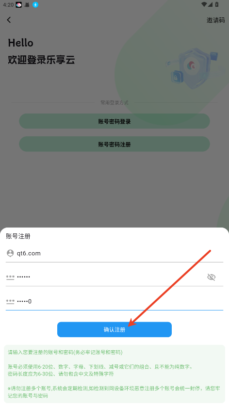 第三步:这里自定义账号和密码,点击【确认注册】就成功了。
