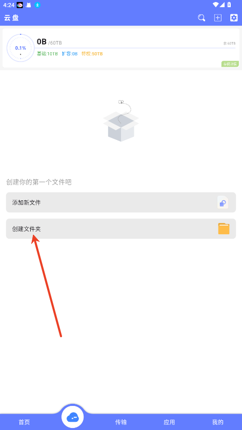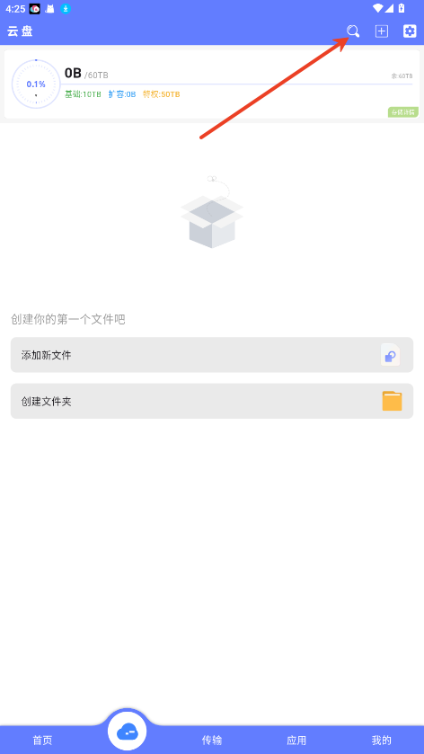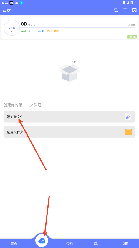 打开应用后,在网盘内点击“添加新文件”按钮,将本地文件(如文档、照片、视频等)上传至云盘。