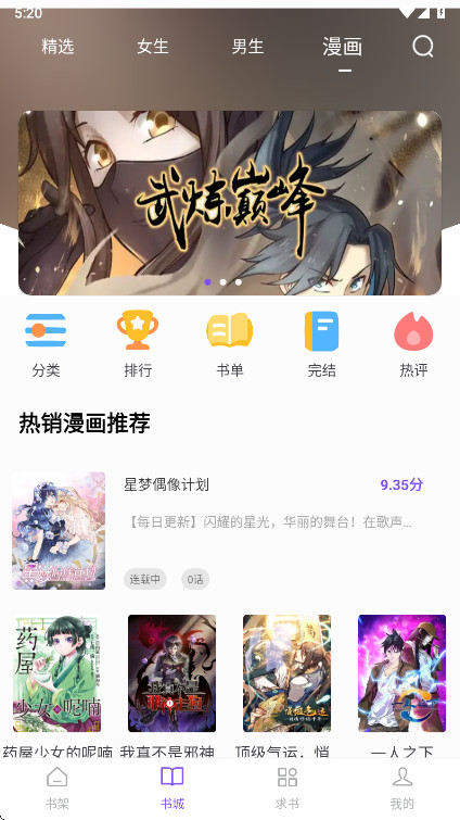 2.在“求书”频道中直接搜索我们想要看的漫画,然后就可以直达搜索结果;