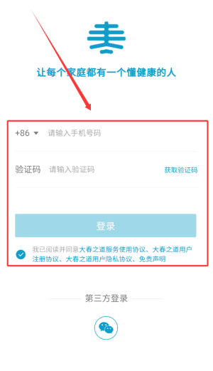 2.在登录页面输入手机号码及短信验证码,即可完成账号注册与登录流程。