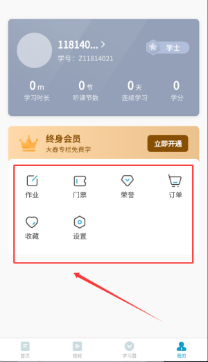 4.个人中心集中展示我的作业任务、电子门票、订单详情及收藏内容。