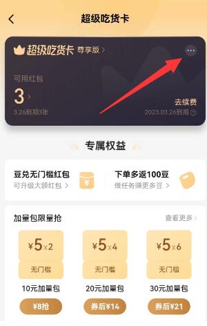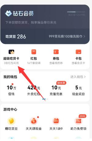 1、在【我的】个人信息页面,点击超级吃货卡。