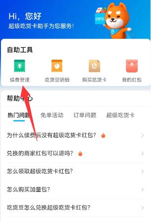 4、找到自助工具中的【续费管理】,点击进入该页面。