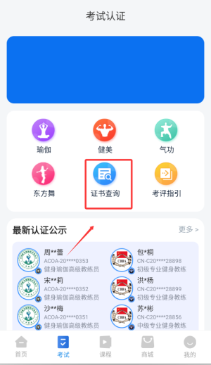 1.进入app内,在首页点击考试认证。