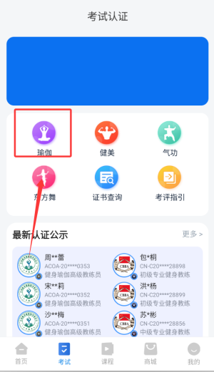 2.进入你所考试的科目,比如瑜伽。