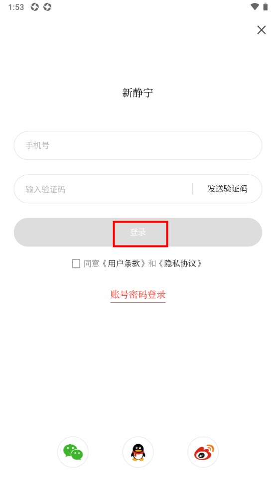 2.输入手机号获取验证码点击登录即可自动注册生成账号。