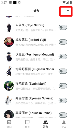 1、点击好友界面右上角的加号。